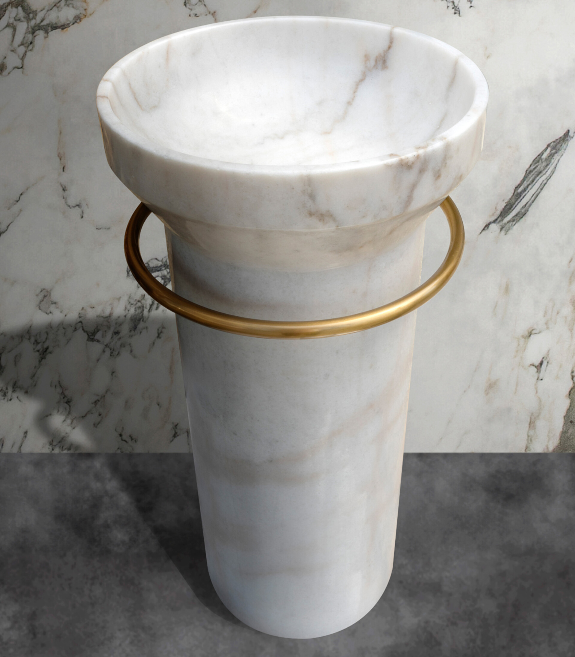 Bisogno assoluto di eleganza o di materiali escusivi? Beh… Moon White freestanding è quello che fa per voi! Questo freestanding è realizzato in un solo blocco di marmo ed unisce uno stile raffinato e luxury ad inattese doti di funzionalità. La capiente vasca si collega alla base, interrotta solamente da un raffinato anello in acciaio finitura oro matt come porta salviette.